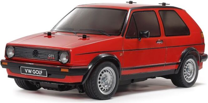 The kit features a pre-painted polycarbonate body, modeled after the Volkswagen Golf II GTI 16V. The body is painted in Tamiya red with tinted windows, giving it an elegant and authentic look. The pre-cut wheel arches and pre-made body mount holes make the assembly process easy and quick, especially for beginners. This level of detail in the design makes the model a perfect collector’s item and a standout on the track.