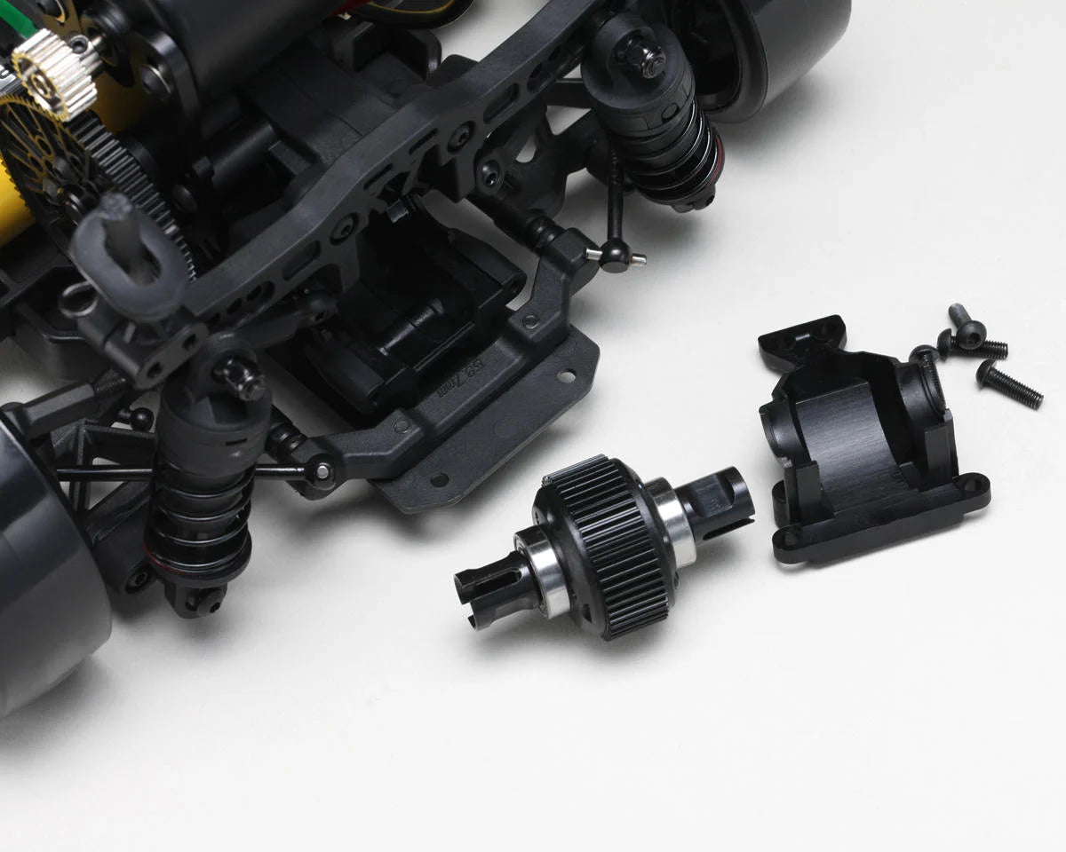 The chassis offers extensive customization options and a durable construction. It features height-adjustable oil dampers, an angle-adjustable aluminum motor mount, and a flexible resin main chassis with a double-deck structure for increased rigidity. The suspension components are compatible with high-precision optional parts for further performance enhancement. The car also supports different battery sizes and positions, allowing you to adjust the car's characteristics to match your driving style. Additionally, the large urethane bumper contributes to the car's durability and stability, giving you peace of mind during those unexpected crashes.