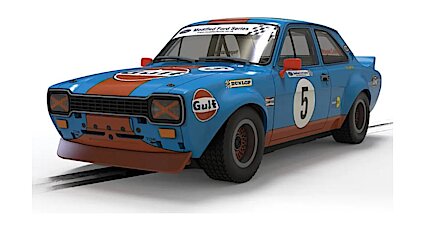 Wayne Crabtree races this amazing Gulf Escort in the Scalextric supported Modified Fords, championship. The Ford Escort MK1 Gulf Edition combines classic design with modern racing flair. This Scalextric car stands as a testament to innovation and performance in motorsport customization. From its iconic Gulf livery to the meticulously replicated details of Crabtree's modifications, every element of the Ford Escort MK1 Gulf Edition reflects a blend of heritage and contemporary racing technology. Whether you're navigating tight corners or accelerating on straightaways, this model promises an exhilarating experience for collectors and racing enthusiasts alike
