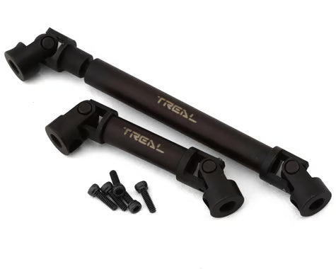 Treal Hobby Axial SCX24 Hardened Steel Center Driveshaft. Constructed from high quality steel, this optional center slider driveshaft set is intended for the Axial SCX24 (AXI00005T - Gladiator) micro crawler platform to enhance durability and reliability. package includes one front driveshaft and one rear center slider driveshaft.