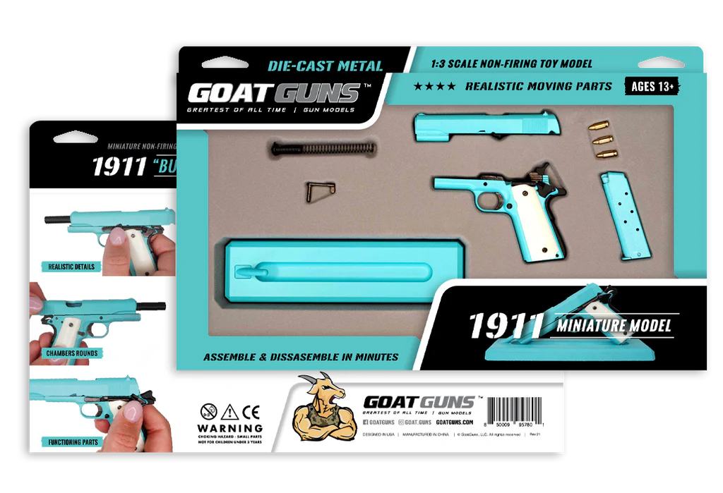 The Tiffany Blue 1911 is a custom variation of the classic 1911. It features a distinctive Tiffany Blue finish on the frame and slide, often accompanied by custom grips and engraving. This unique and eye-catching color scheme is popular among firearm enthusiasts and collectors who appreciate both the elegance of Tiffany Blue and the timeless design of the 1911. While not a standard military or law enforcement issue, the Tiffany Blue 1911 is a niche and aesthetically appealing firearm variation within the broader world of firearms customization and personalization.