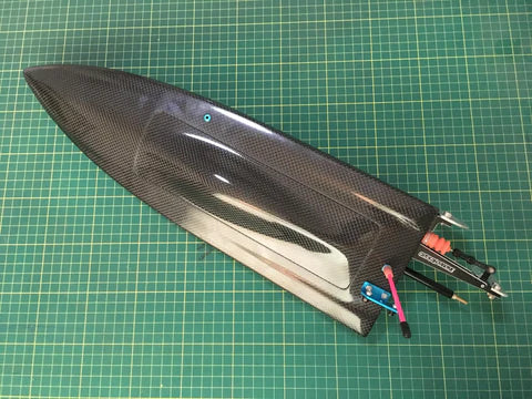 Here's the Oxidean Marine Mini-Dom ARTR! This fun 17 inch Full carbon fiber rc boat is Loads of fun, and best of all, Self righting! that's right! If you happen to capsize the boat, a unique chamber floods with water, sets her right side up again, and Away you go!