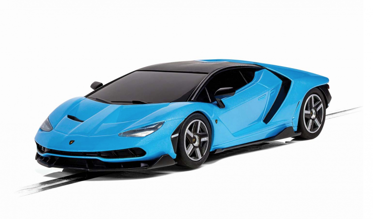 The Lamborghini Centenario is a striking, loud and exciting machine! In this beautiful blue color scheme, the car will stand out anywhere. Equally at home on the Scalextric track or cruising round the streets of Bel Air, the Centenario is a triumph of design and function over physics. With its super-resistant design, the car can also survive numerous mishaps, being somewhat stronger than its full-size cousin