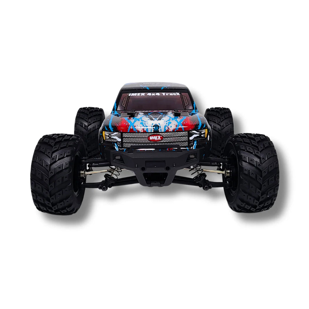 The IMEX Shotgun is designed for reliability and performance, featuring premium components like metal differentials, adjustable shocks, and independent front and rear suspension, all supplemented by ball bearings for optimal efficiency and durability. With powerful LED headlights, you can enjoy racing any time, day or night, making this truck the perfect companion for outdoor adventures.
